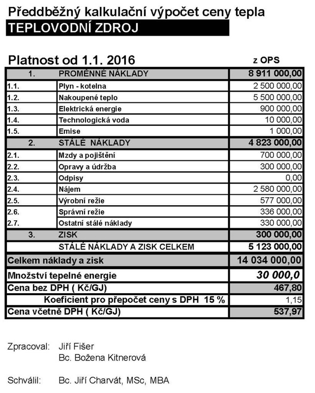 Kalkulace ceny tepla pro rok 2016