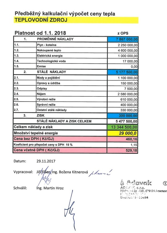 Uvnitř článku naleznete kalkulaci ceny tepla pro rok 2018.